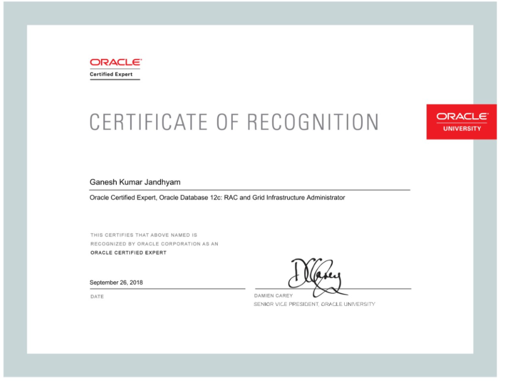 • Oracle Certified Expert, 12c RAC & Grid Infrastructure